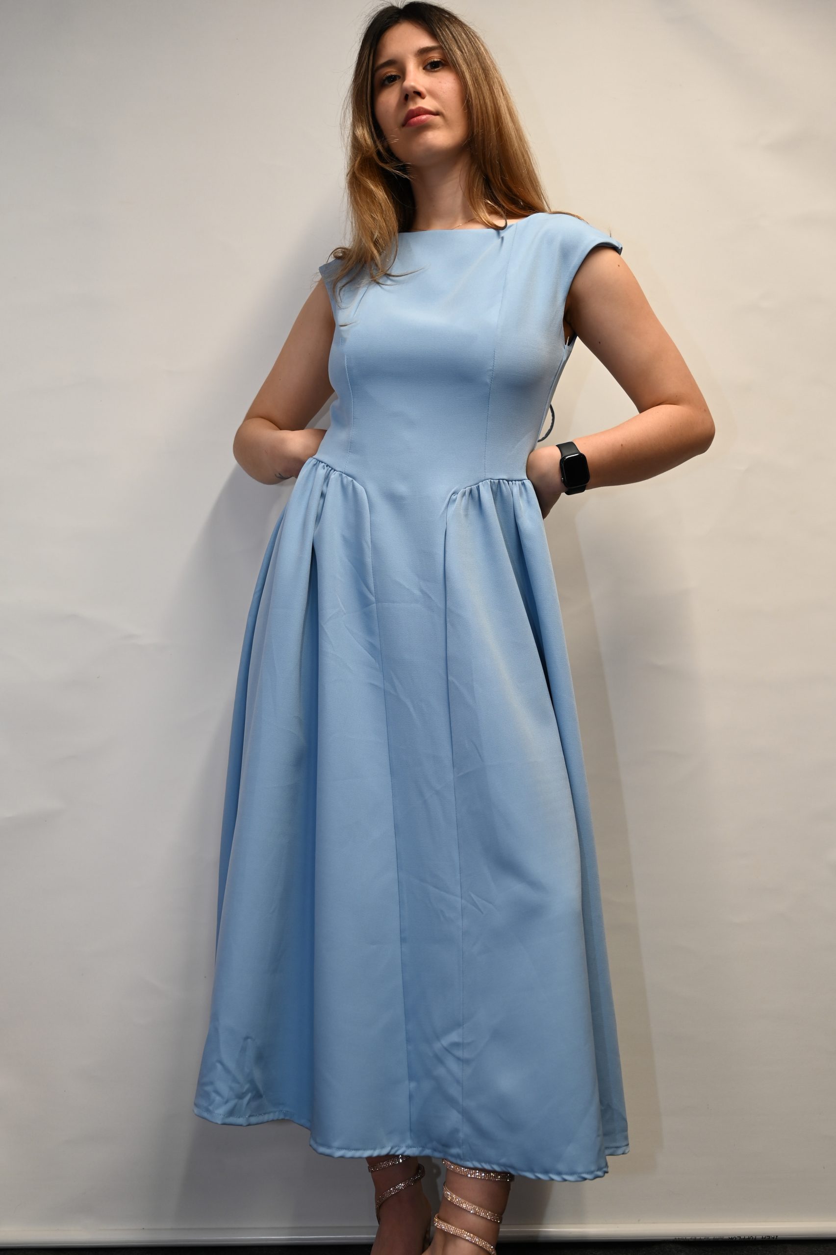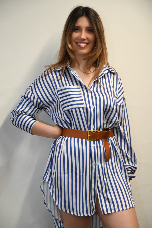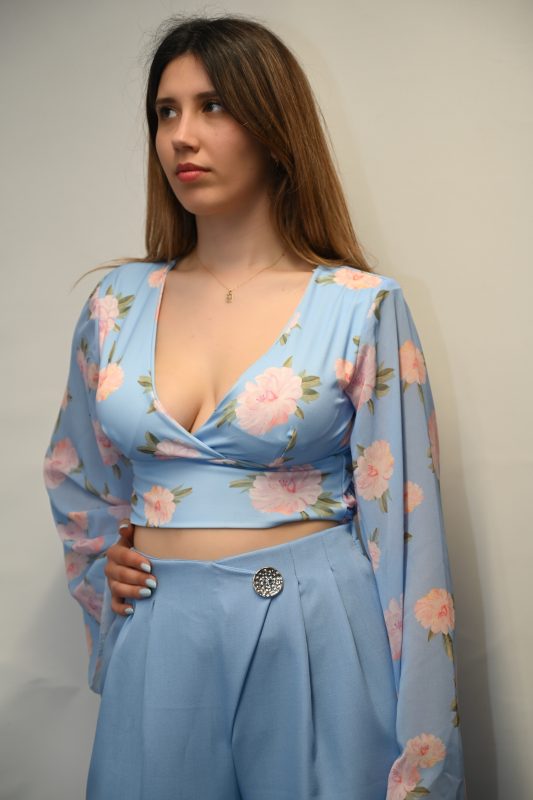 Crop Top με Ενίσχυση Φλοραλ και καμπανα στα μανικια Γαλαζιο