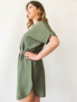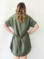 Φόρεμα κοντό με ζώνη χακί