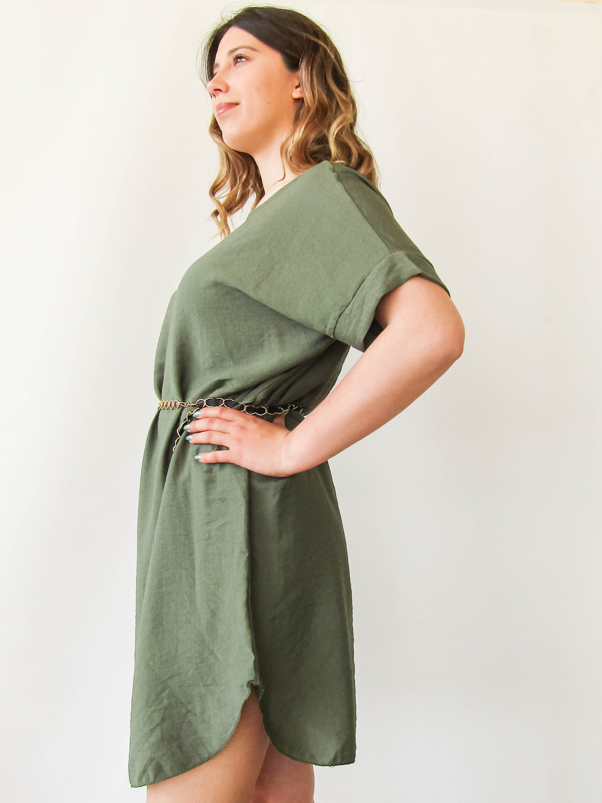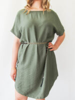 Φόρεμα κοντό με ζώνη χακί one size