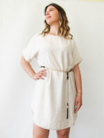 Φόρεμα κοντό με ζώνη εκρού