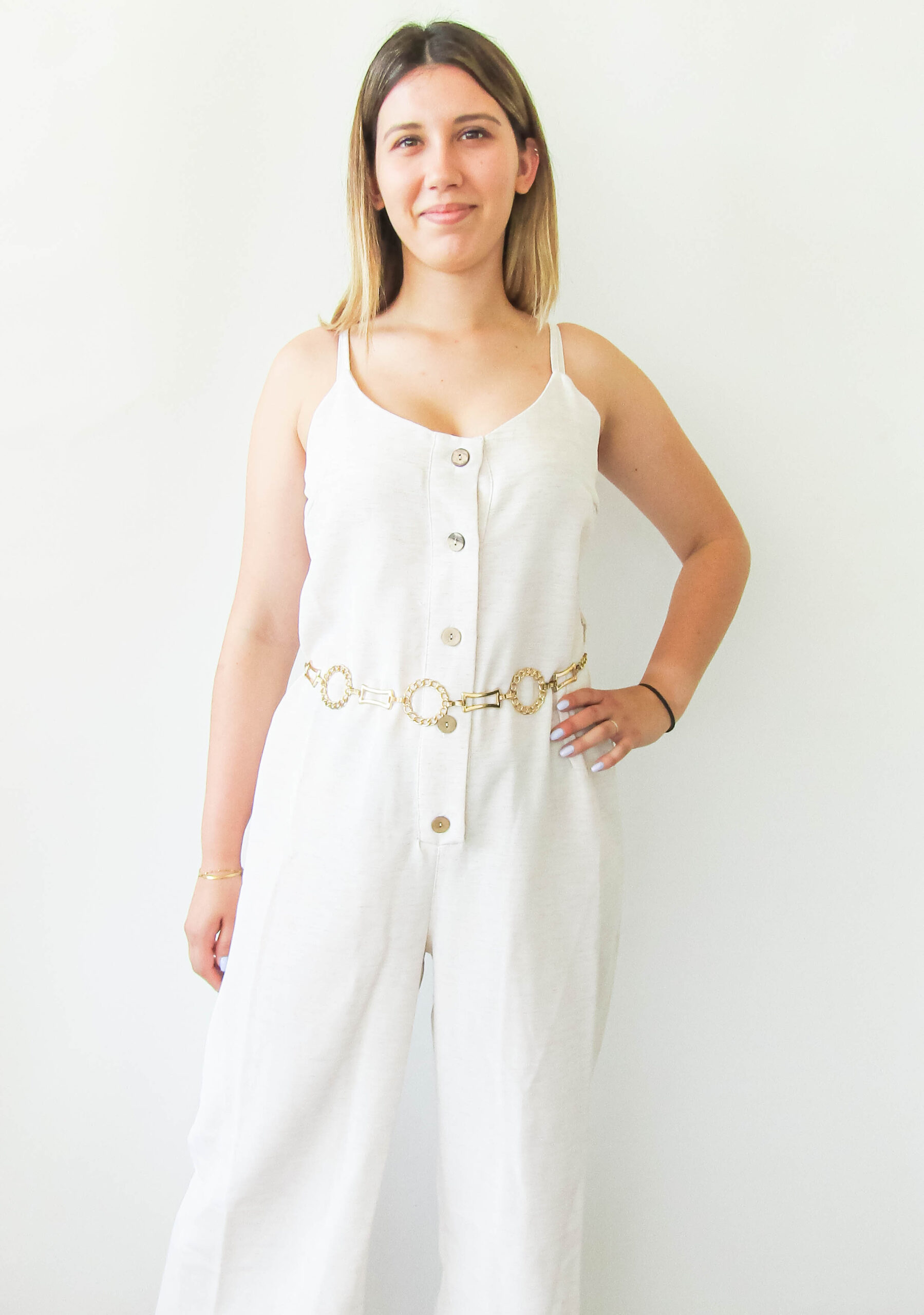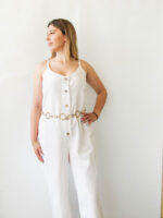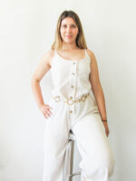 Ολόσωμη φόρμα λινή εκρού. Στενή εφαρμογή