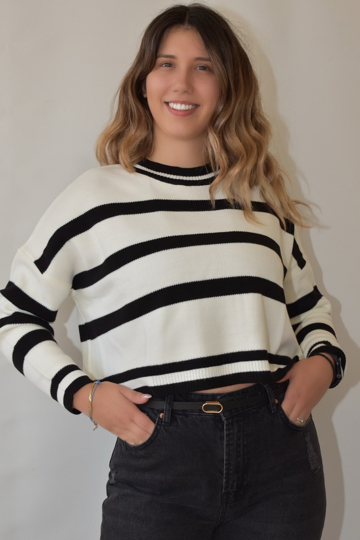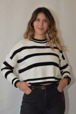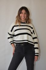 ΠΛΕΚΤΟ ΚΟΝΤΟ ΛΕΥΚΟ ΜΕ ΡΙΓΕΣ ΜΑΥΡΕΣ ΚΑΛΥΠΤΕΙ ΕΩΣ XL