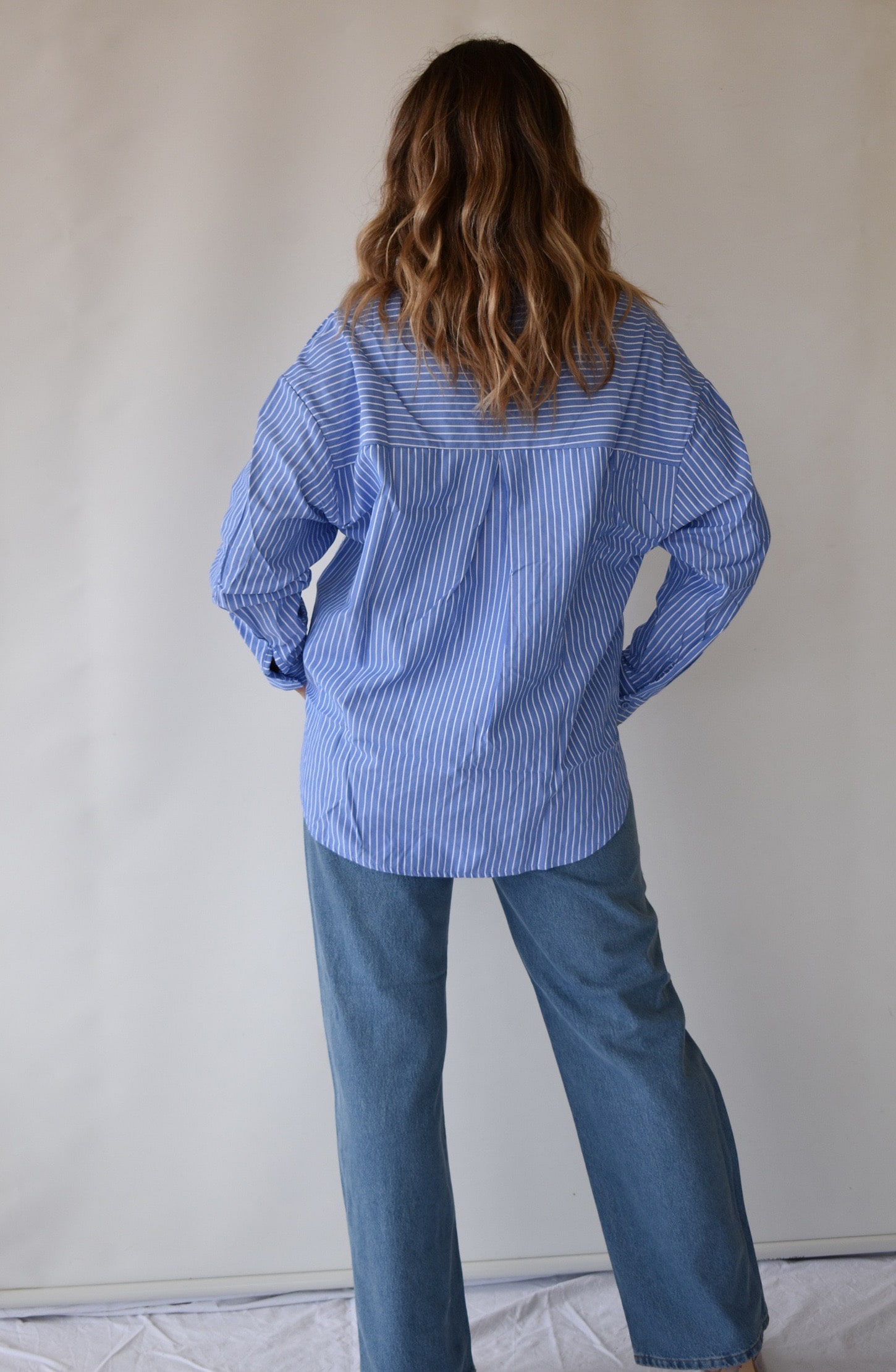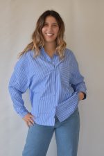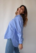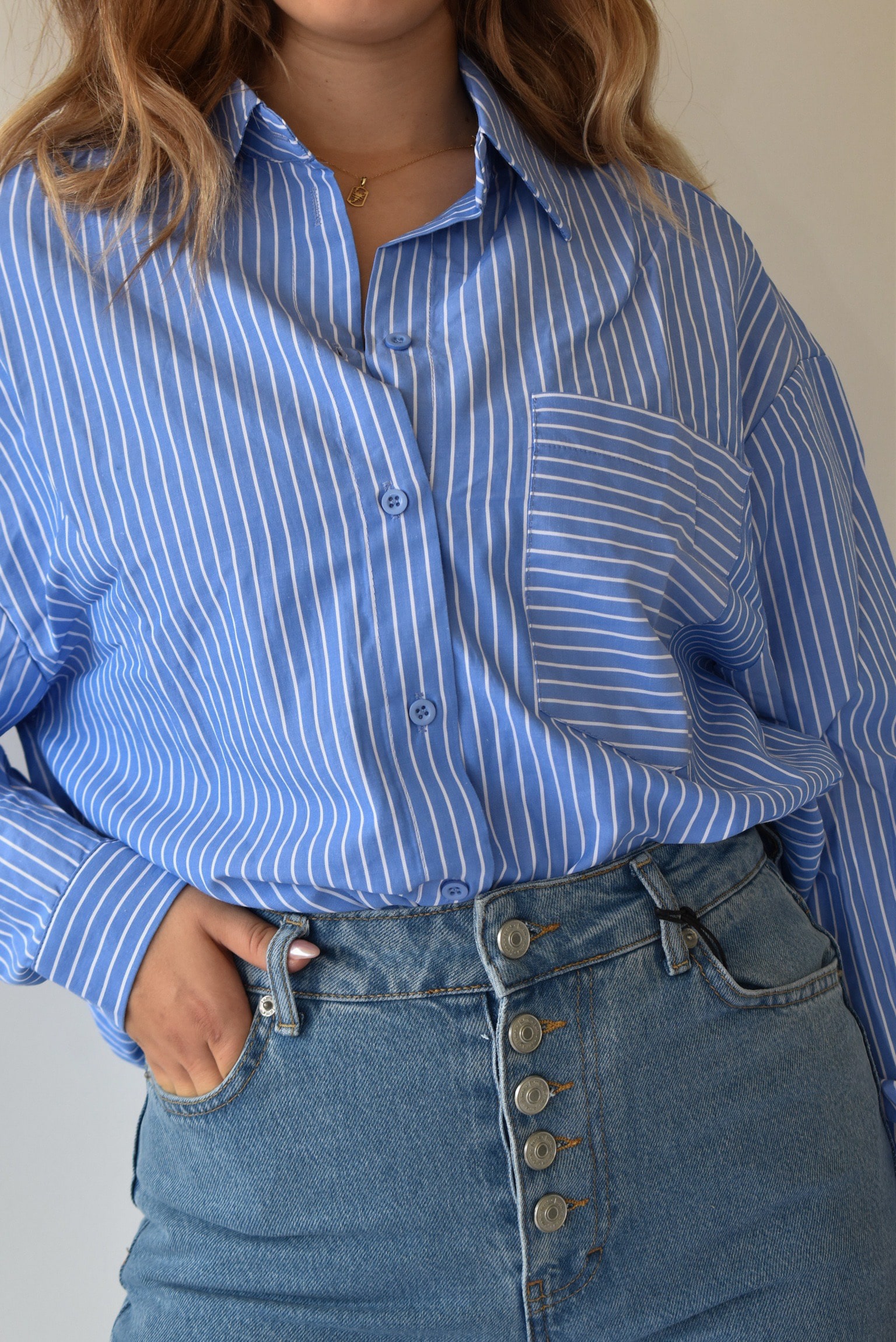 Πουκάμισο μπλε με ριγες λεύκες και τσέπη στο πάνω μέρος οver size
