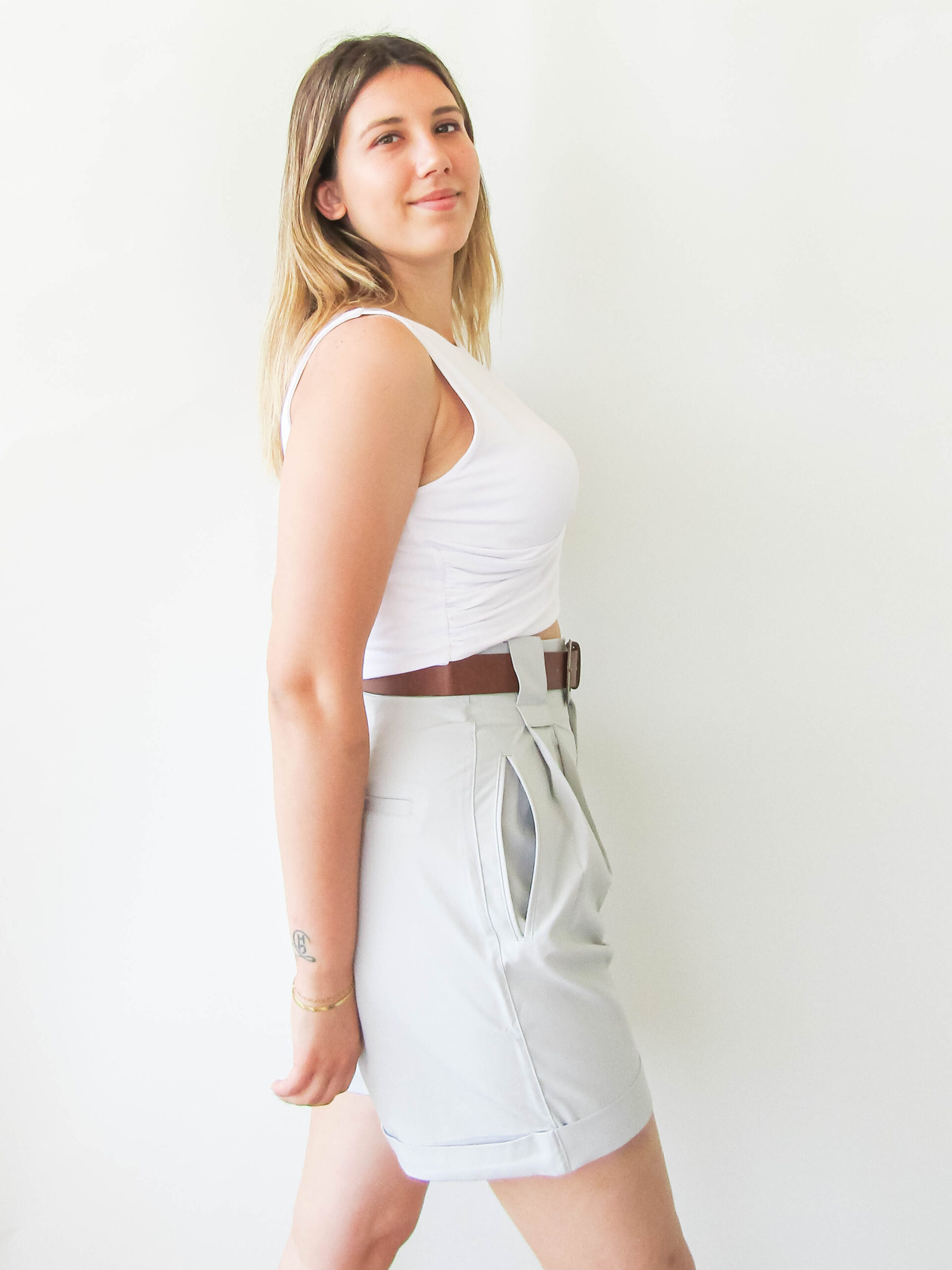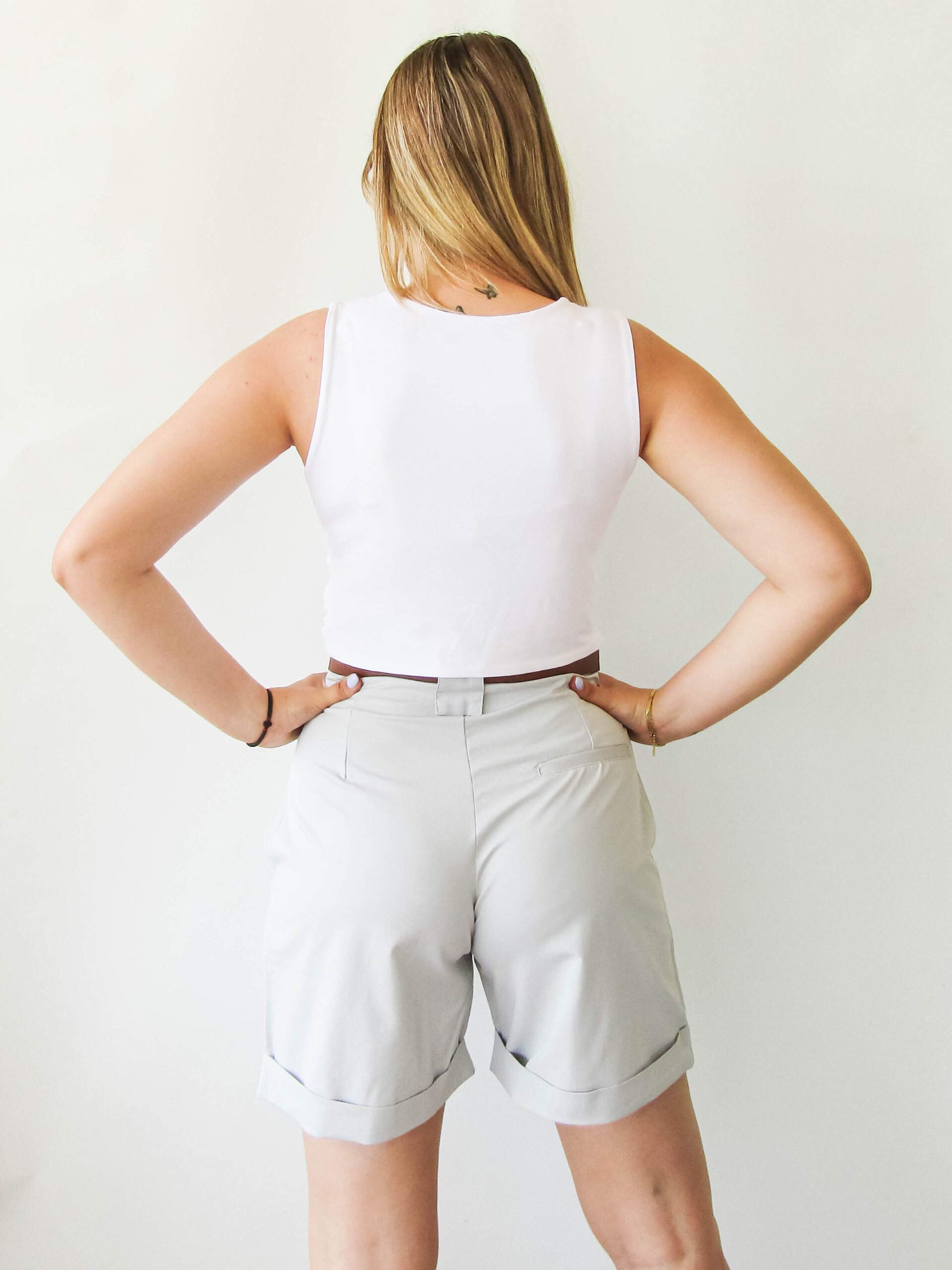 Σόρτς με ζώνη γκρί με στενή μέση.